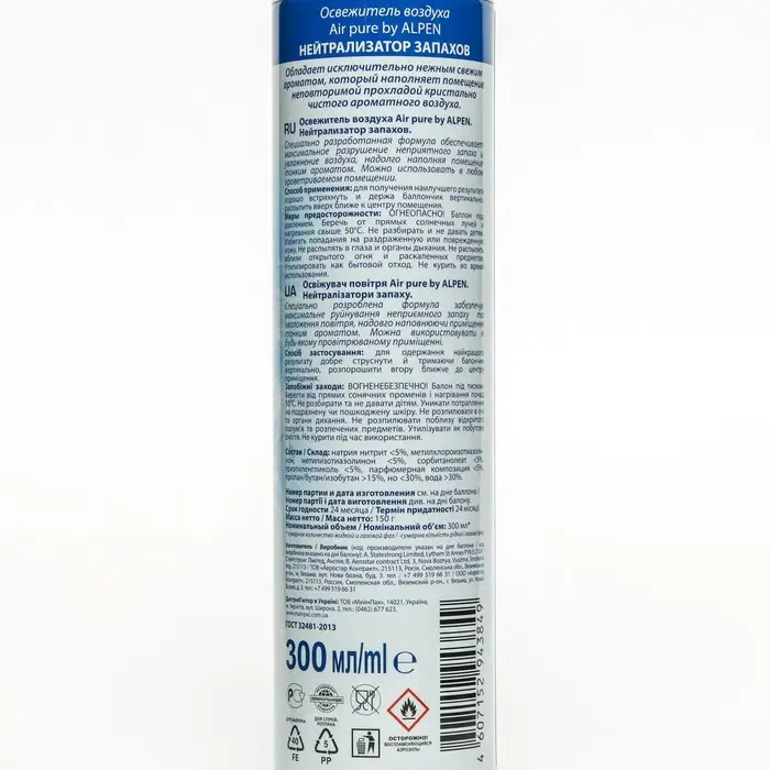Освежитель воздуха Alpen, Нейтрализатор запахов, 300 мл