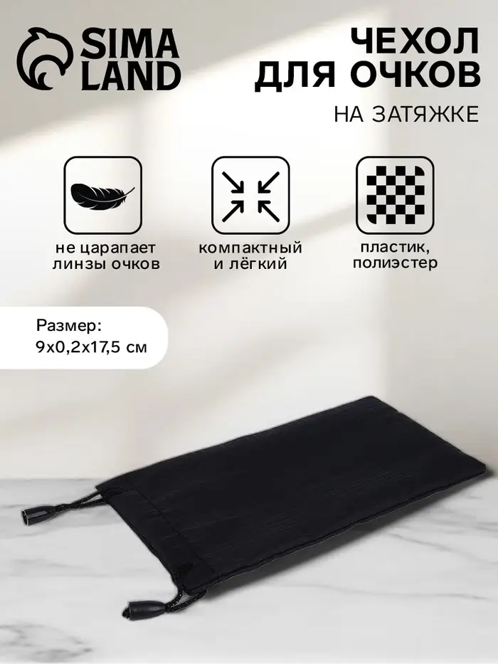 Чехол для очков, на затяжке, длина 17.5 см, ФАСОВКА 20 ШТ, плотность 190 г/м², чёрный