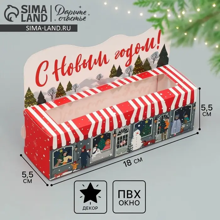 Коробка для макарун «С Новым годом!», 18×5.5×5.5 см