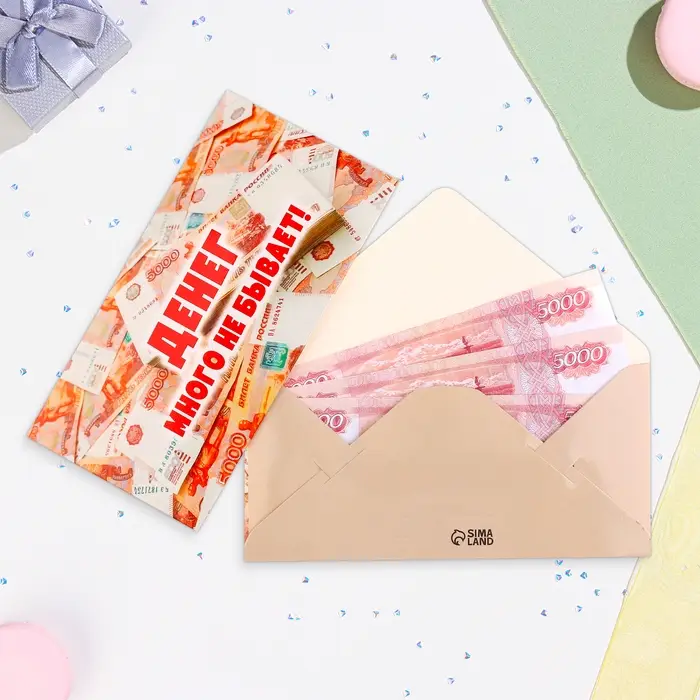 Конверт для денег «Денег много не бывает!», 16.5×8 см
