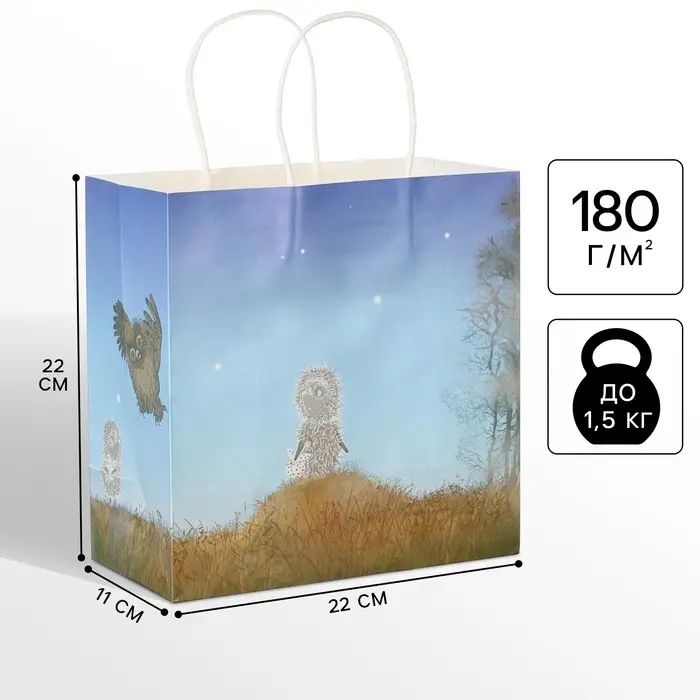 Пакет подарочный, 22х22х11 см, крафт, упаковка, Ёжик в тумане