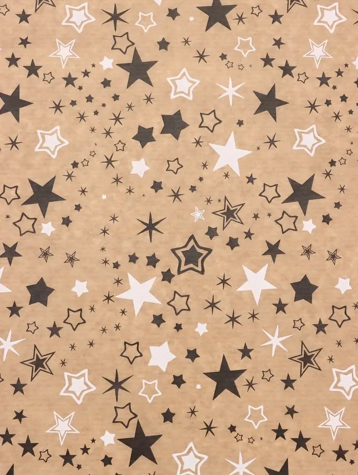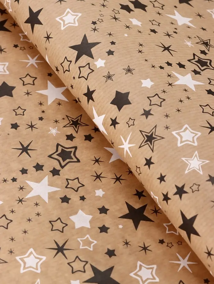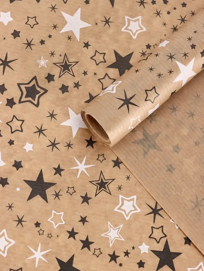 Бумага упаковочная крафт "Звезды", белый/графитовый, 0,72 х 10± 5% м, 40 гр