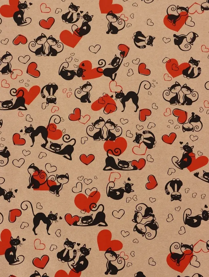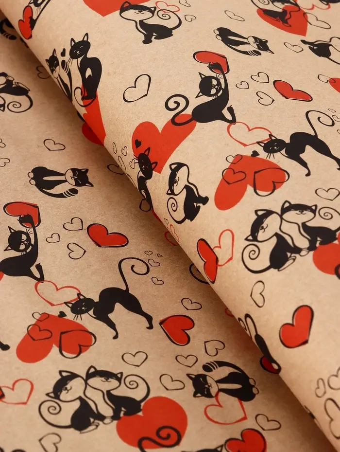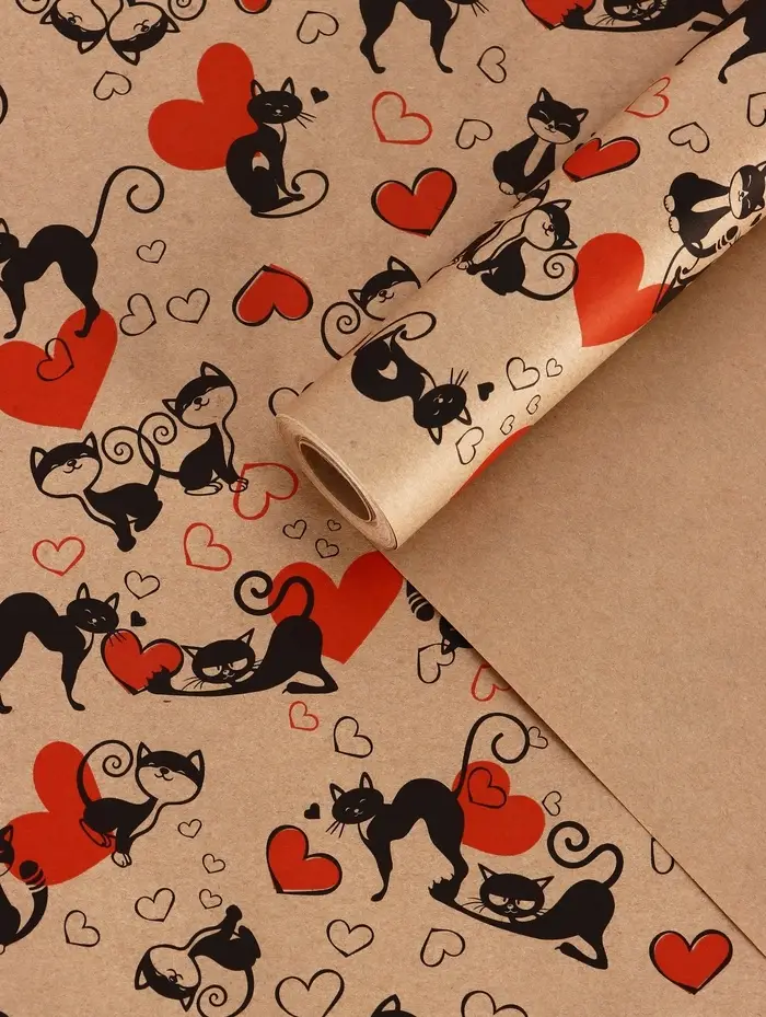 Бумага упаковочная крафт «Ля Мур», черный/красный, 0.72×10 м, 60±5% г
