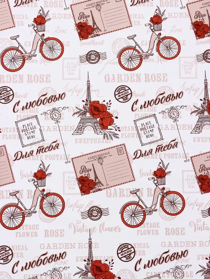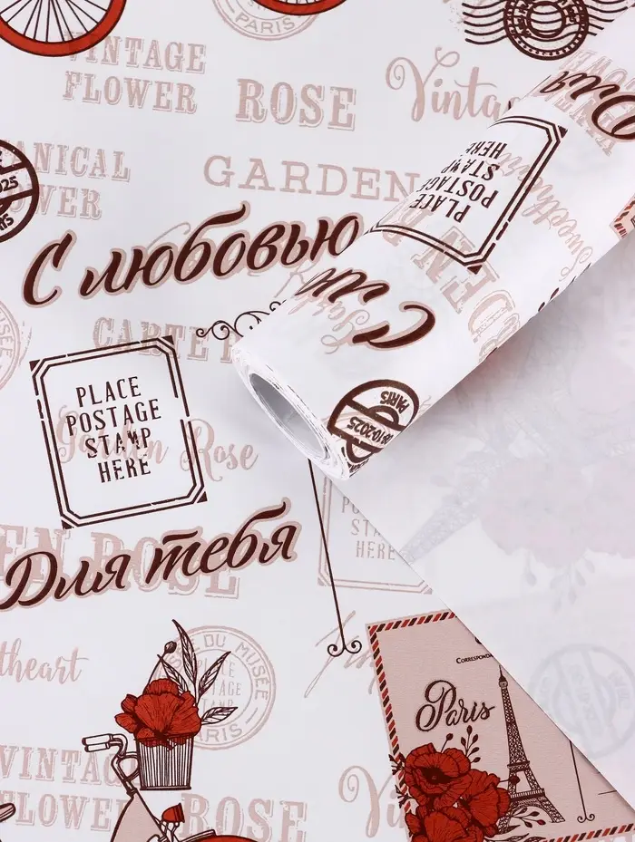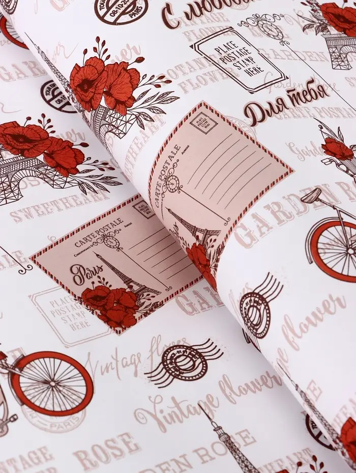 Бумага упаковочная крафт белый "Париж, с Любовью!", красный, 0.72×10±5% м, 60 г