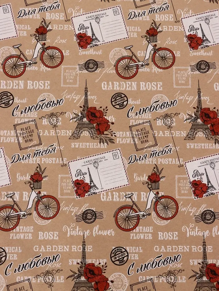 Бумага упаковочная крафт "Париж, с Любовью!", красный, 0.72×10±5% м, 60 г