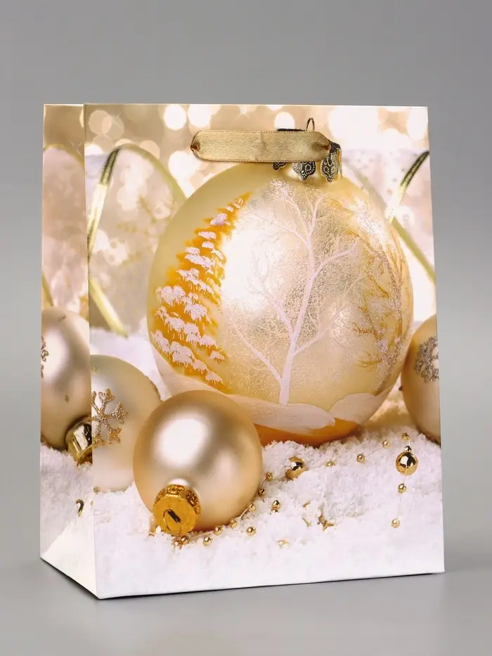 Пакет подарочный ламинированный "Золотые Новогодние игрушки", 18 х 23 х 10 см