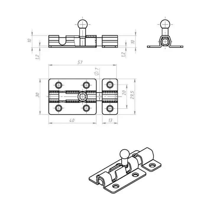 Задвижка дверная ЗД 007, 40 мм, черная