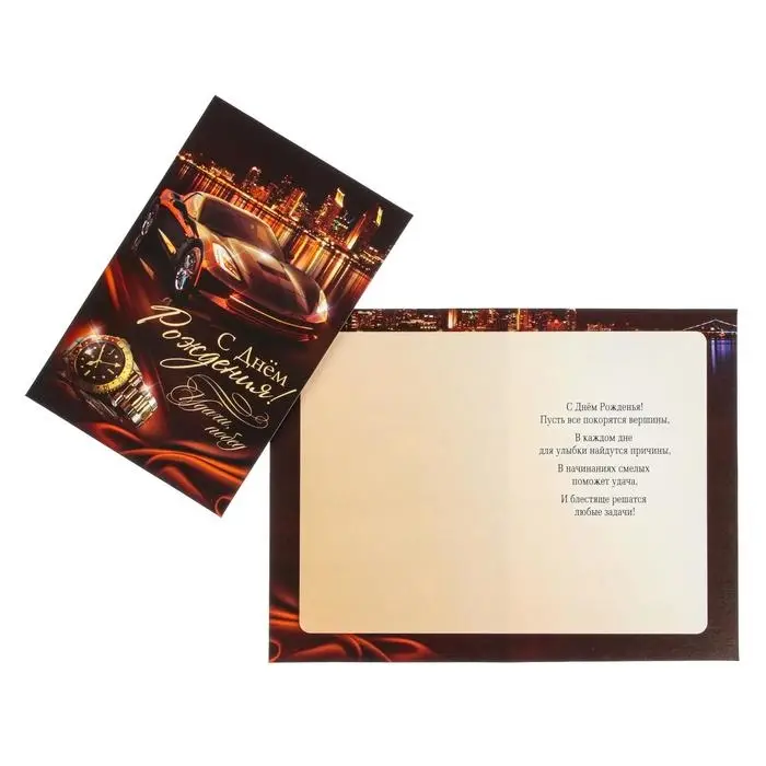 Открытка "С Днем Рождения!" машина, часы