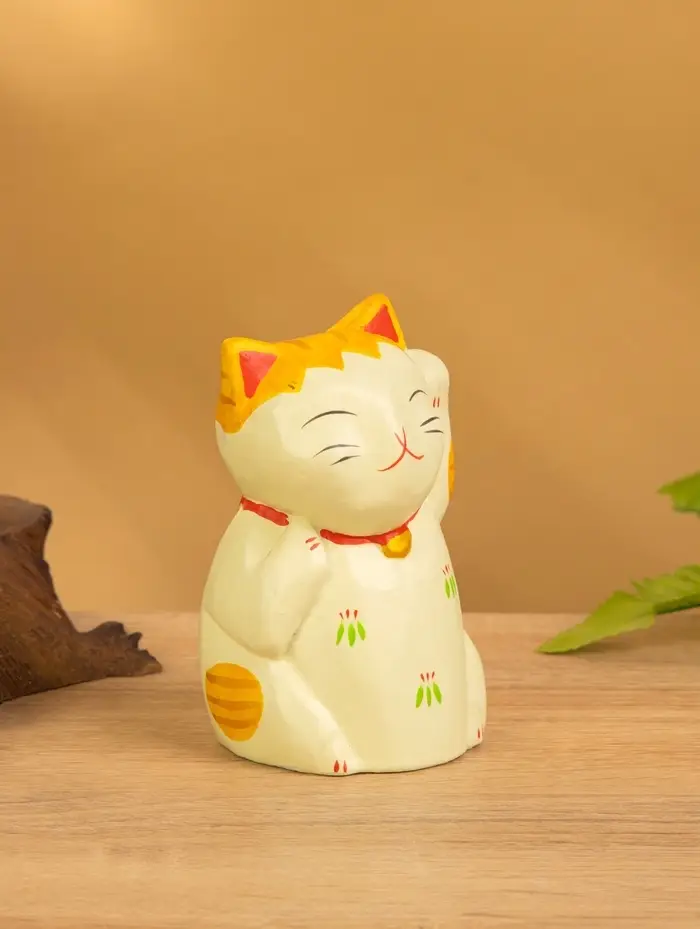 Сувенир «Кошка Неко», 6×6×11 см, дерево, оранжевый