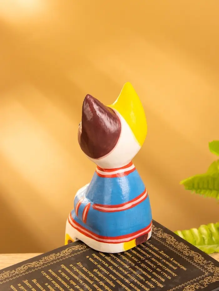 Сувенир дерево "Котенок в кофте сидячий" 6х6х15 см