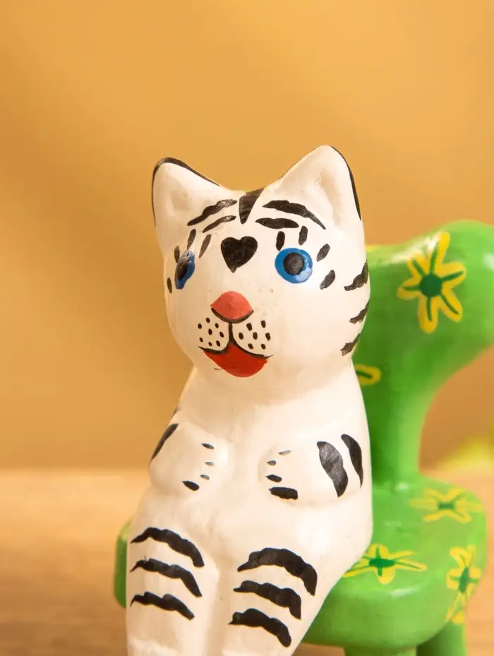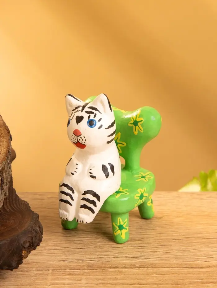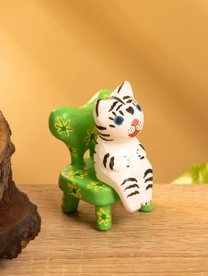 Сувенир дерево "Белый тигренок на стуле" 4х5,5х7,5 см