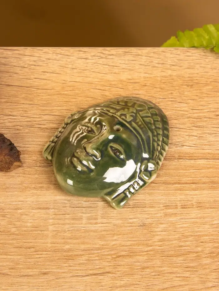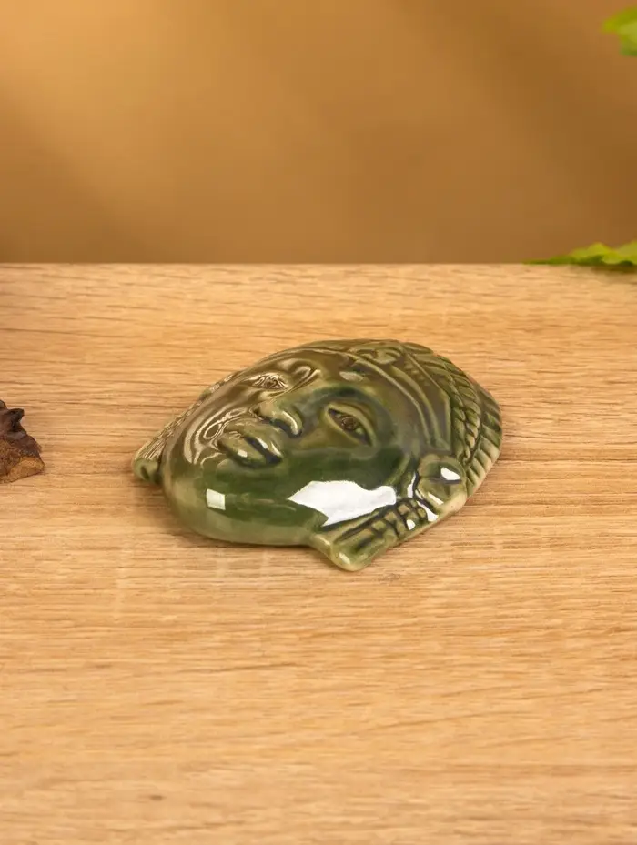 Подставка под благовония "Лицо Будды" керамика, цв. зелёный, 7х5,5х1,5 см