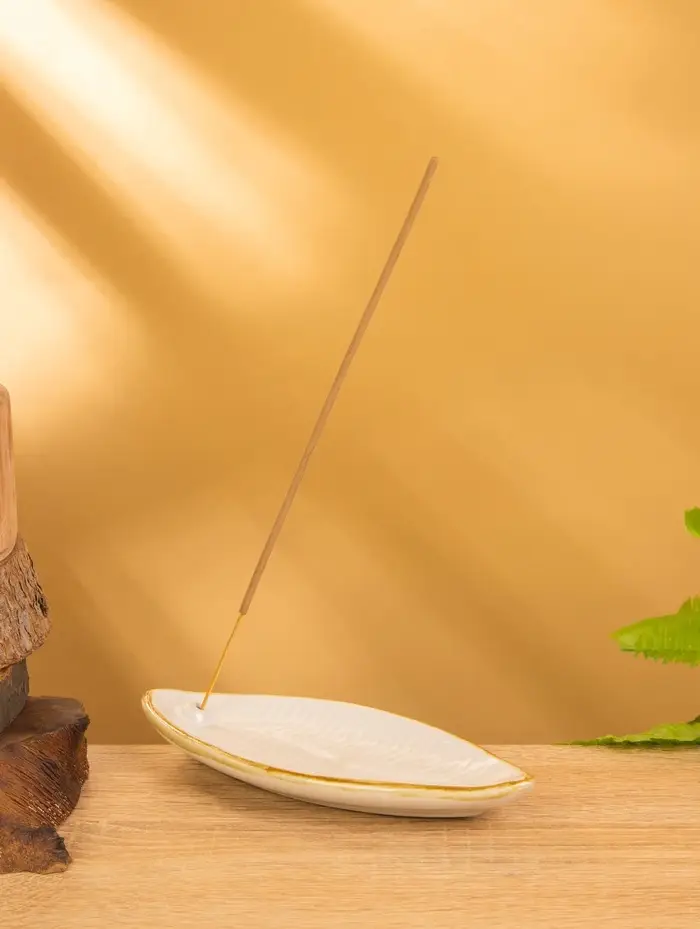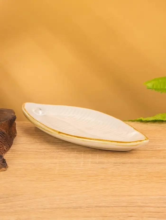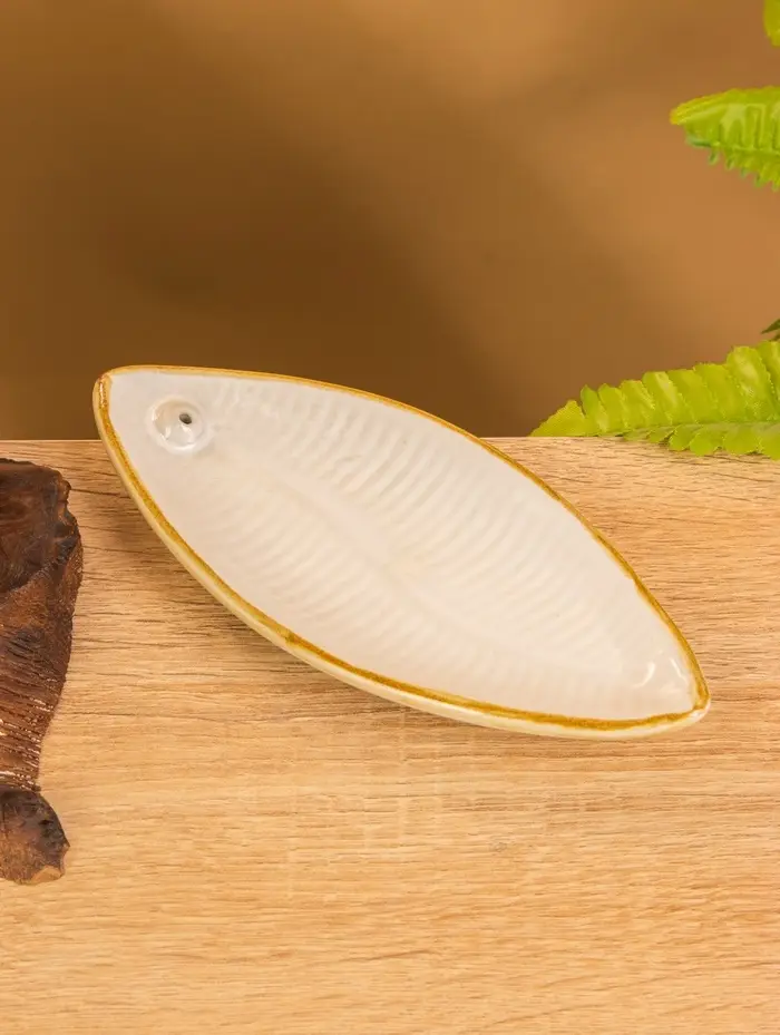 Подставка под благовония "Длинный лист" керамика, цв. белый, 17х7х1,5 см