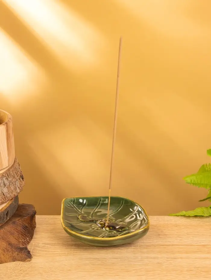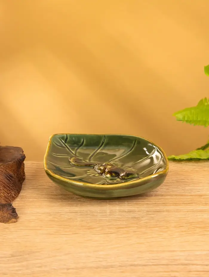Подставка под благовония "Геккон на листке" керамика, цв. коричнево-зелёный, 13х11х2 см