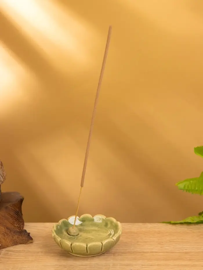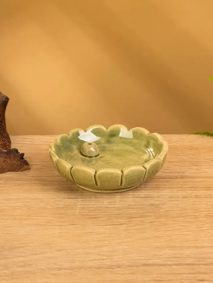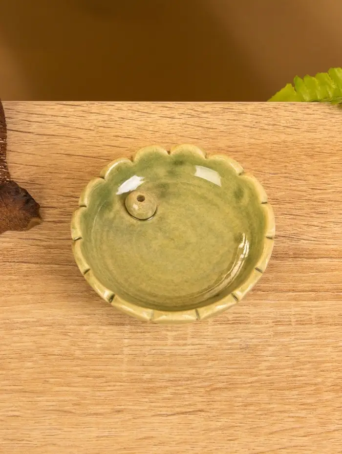 Подставка под благовония "Растение" керамика, цв. зелёный, 8х8х2 см