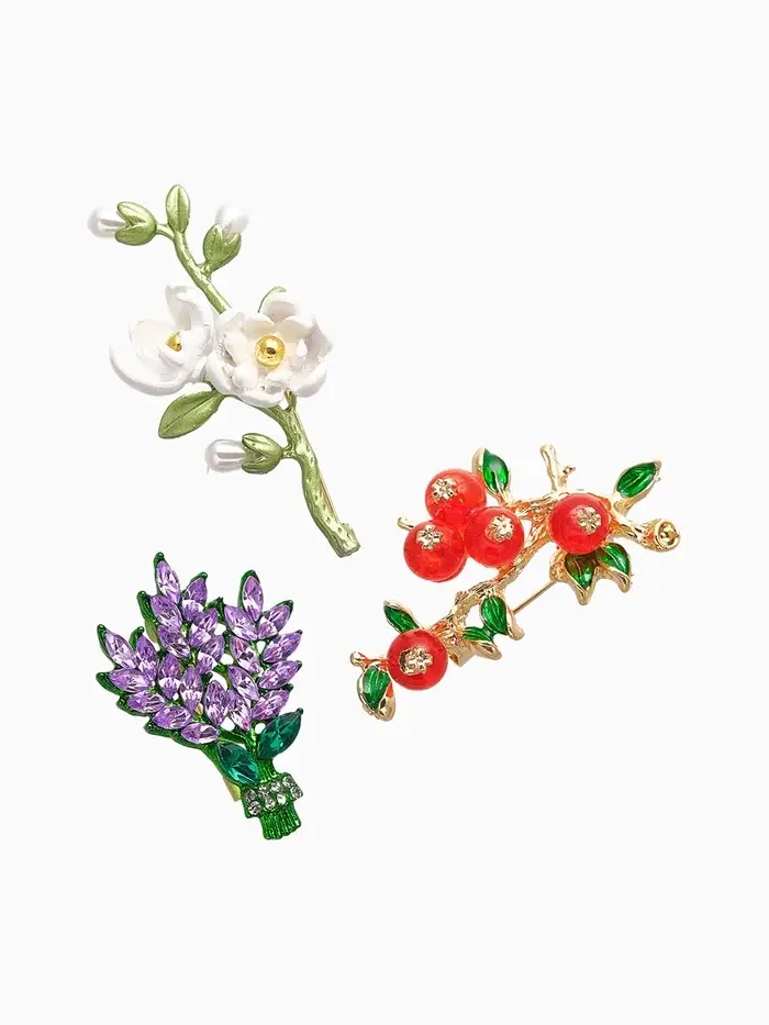 Набор брошей "Цветы" брусника, лаванда, жасмин, цветные