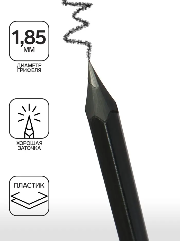 Универсальный карандаш для дома, офиса и школы. Обладает жесткостью Н (твёрдый), подходит для чертежей, письма и рисования.