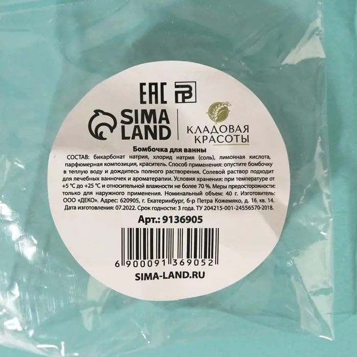 Состав: бикарбонат натрия, хлорид натрия (соль), лимонная кислота, парфюмерная композиция, краситель.
