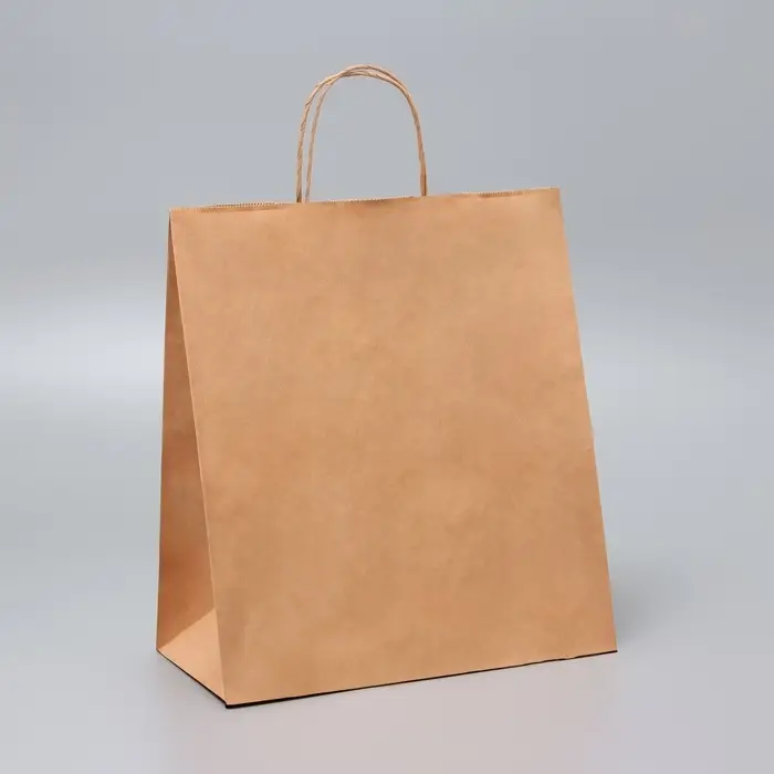 Пакет крафт без печати, крученая ручка, 28×15×32 см