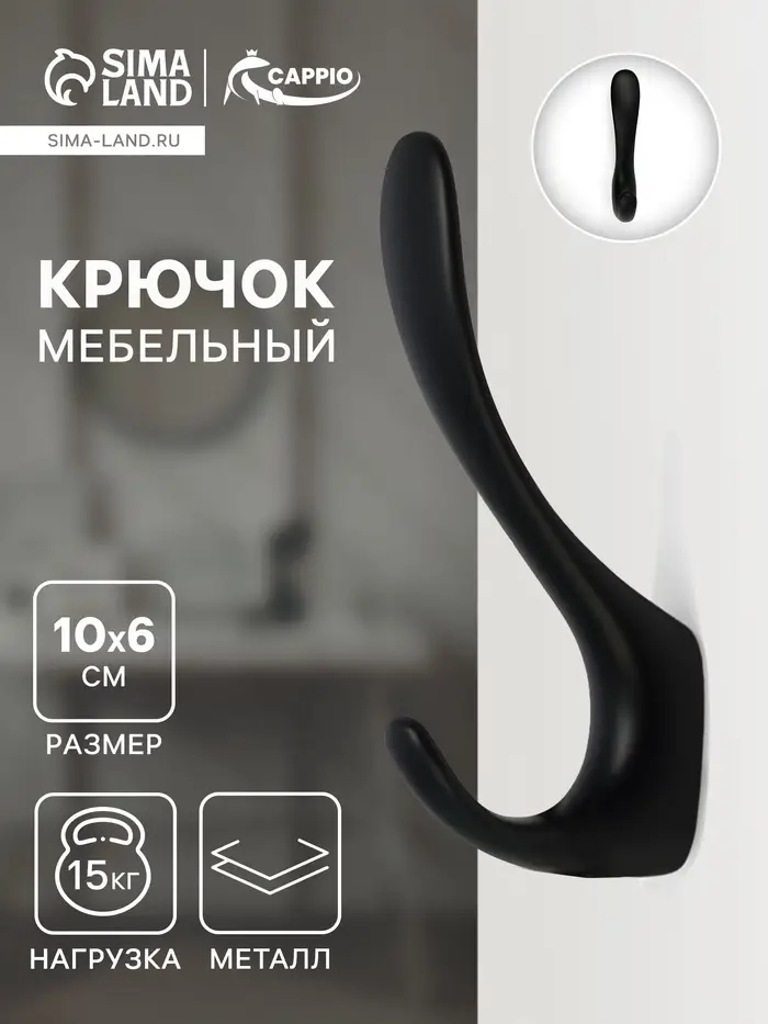 Крючок мебельный CAPPIO NOTE, двухрожковый, цвет черный