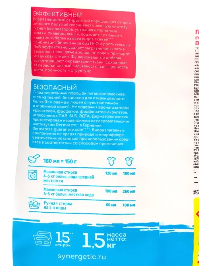 Стиральный порошок Synergetic «Детский», 1.5 кг