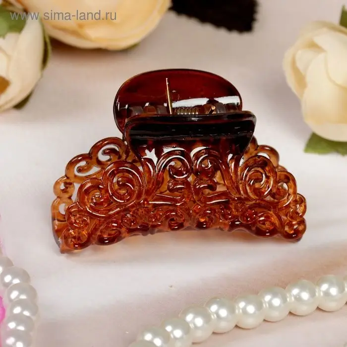Краб для волос "Прозрачный" завитки, 4 см, микс
