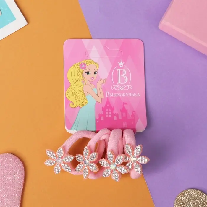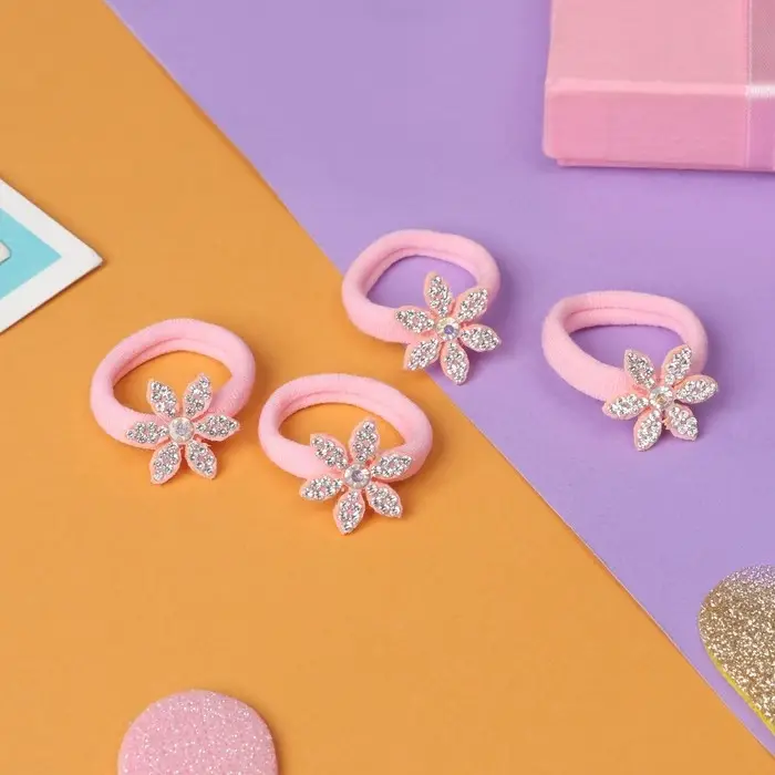 Резинка для волос "Розовый перелив" (набор 4 шт) цветочки, розовый