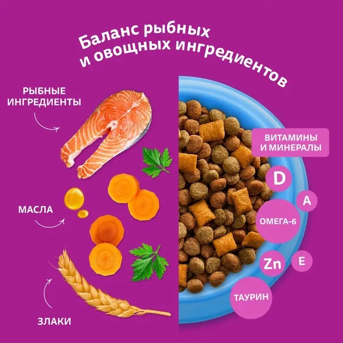 Сухой корм Whiskas для кошек, лосось, подушечки, 1,3 кг