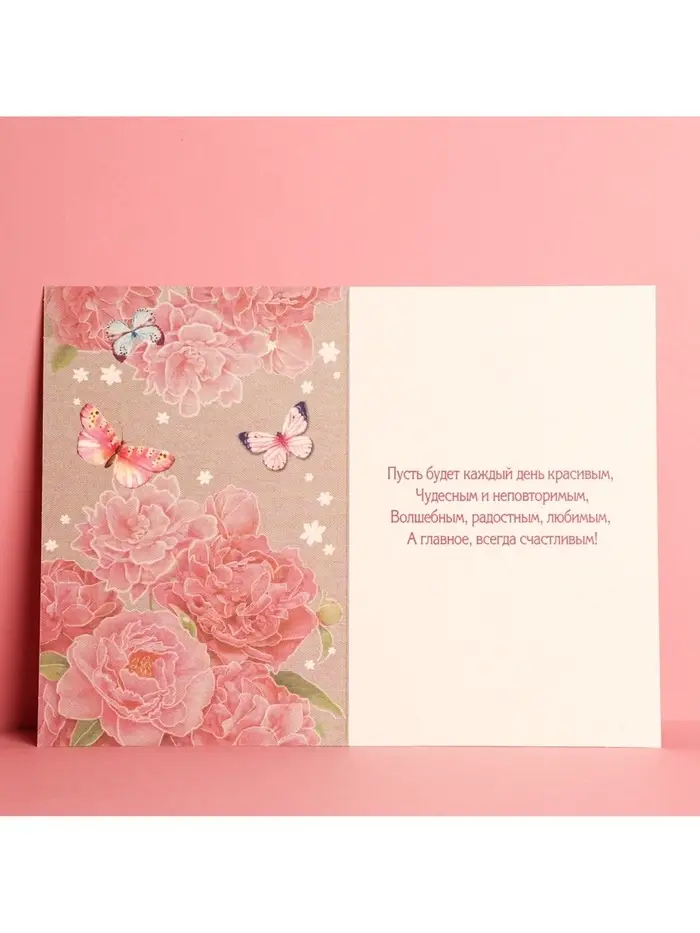 Открытка «С Днем Рождения», розовые пионы, 12 × 18 см