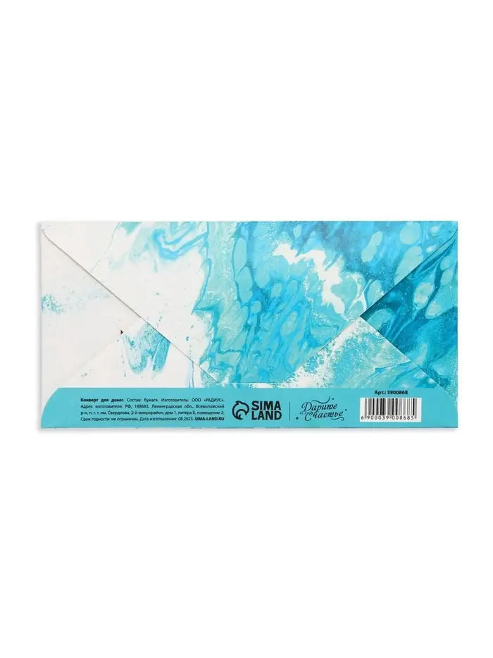 Конверт для денег «Море», глиттер, 16.5 х 8 см