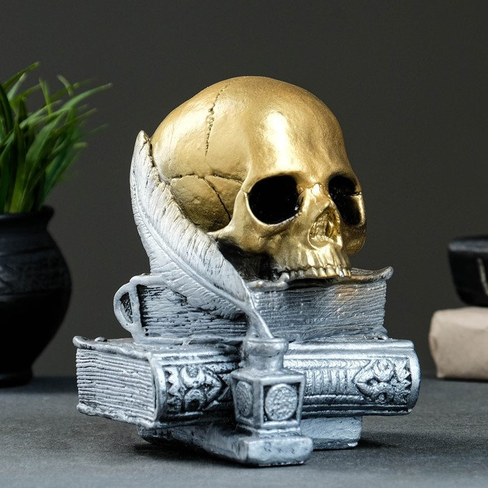 Фигура "Череп с книгой" бронза с серебром, 19см