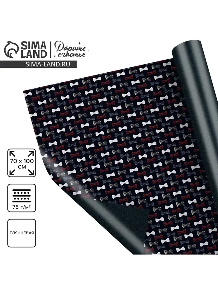 Бумага упаковочная глянцевая двухсторонняя «Мужские бабочки», 70 х 100 см