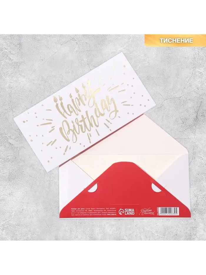 Конверт для денег «С Днем Рождения», тиснение, 16.5×8 см