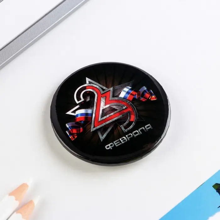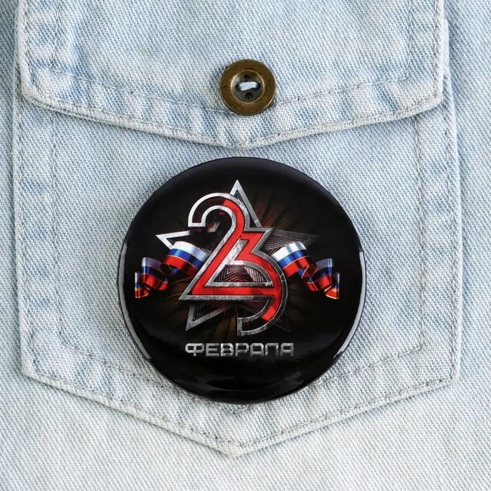 Подарите заслуженное внимание и прекрасное настроение отважному защитнику Родины в суровый февральский день вместе с нашим уникальным значком. Сувенир традиционной формы с красочным дизайном дополнен булавкой на обратной стороне, поэтому его легко прикрепить к одежде.