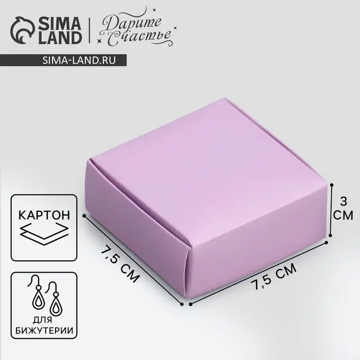 Коробка подарочная под бижутерию двухсторонняя, упаковка, «Лаванда», 7.5 х 7.5 х 3 см