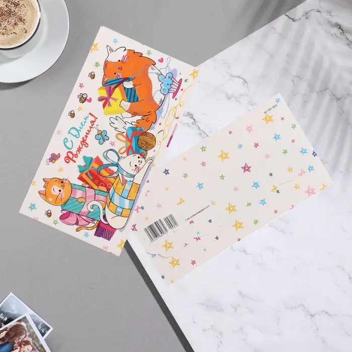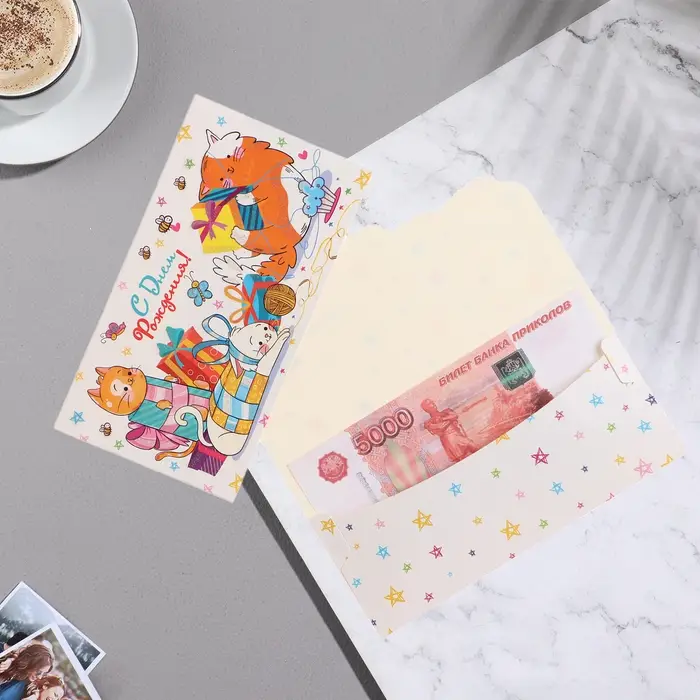 Конверт для денег "С Днём Рождения!" рыжие котики,