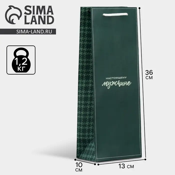 Пакет подарочный под бутылку, упаковка, «Мужчине», 36 х 13 х 10 см