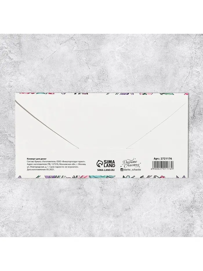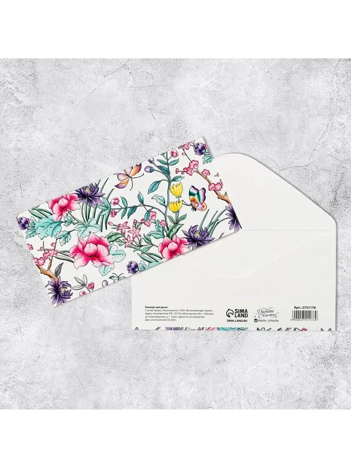Конверт для денег «Тропические цветы», 16,5 × 8 см