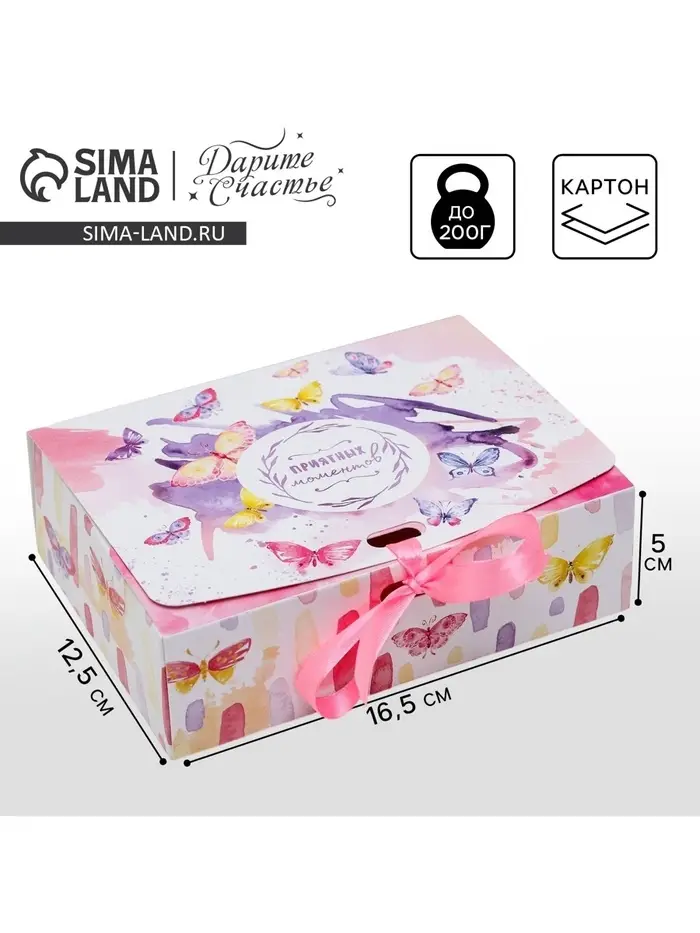 Коробка подарочная складная, упаковка, «Приятных моментов», 16.5 х 12 х 5 см, БЕЗ ЛЕНТЫ