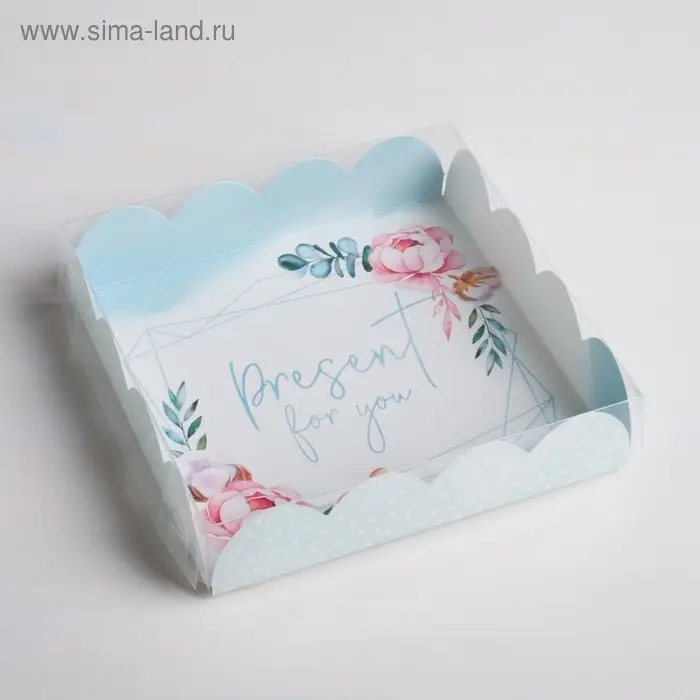Коробка для печенья, кондитерская упаковка с PVC крышкой, Present for you, 13 х 13 х 3 см