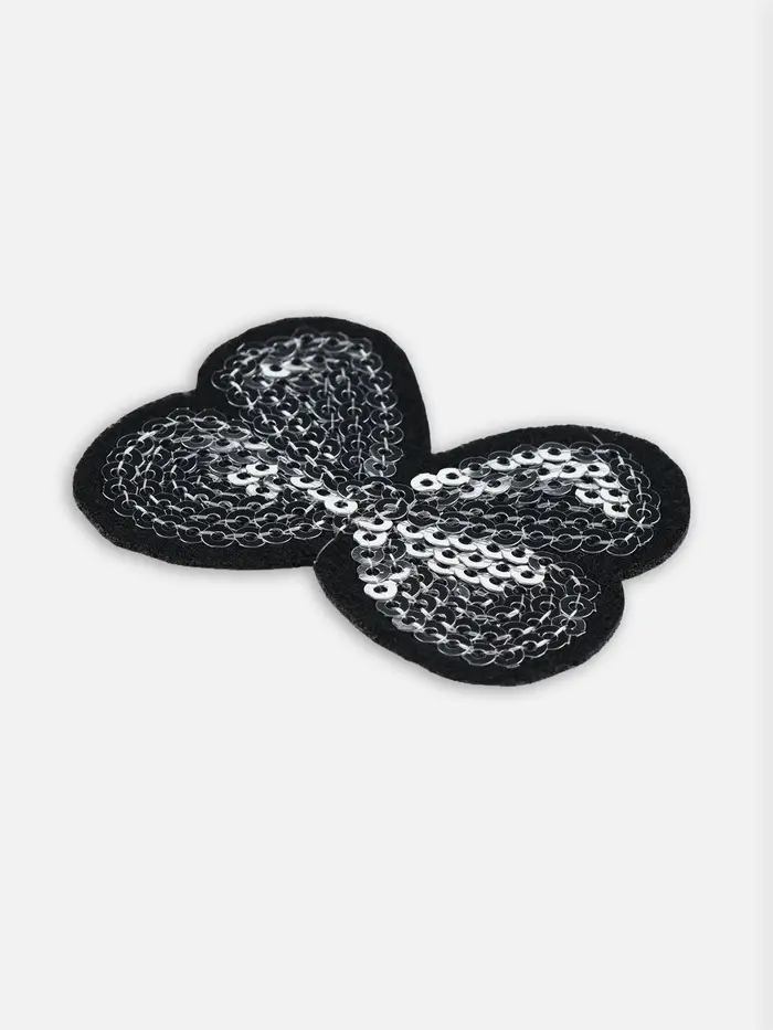Термоаппликации «Бантик» с пайетками — это элегантные и женственные декоративные элементы для текстиля с праздничной тематикой. Аппликации выполнены в виде серебряных бантов с мерцающими пайетками, что делает их идеальными для создания нежных или торжественных образов.