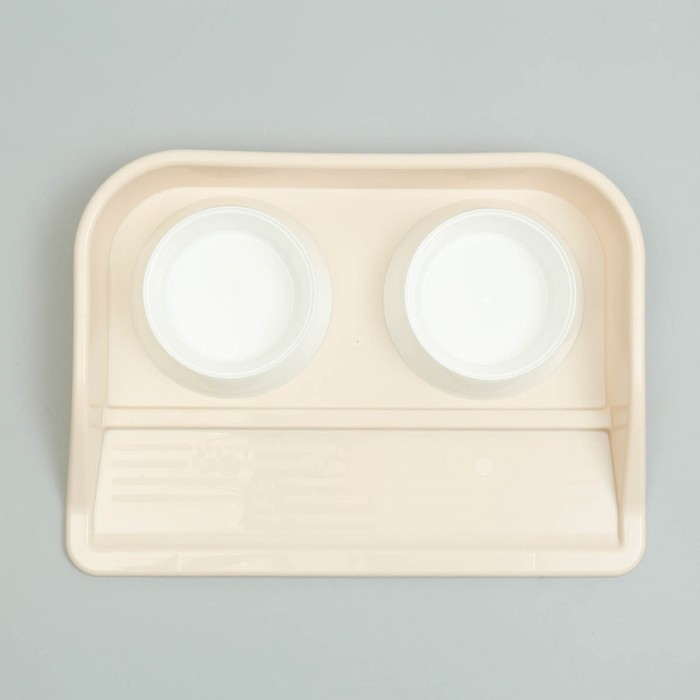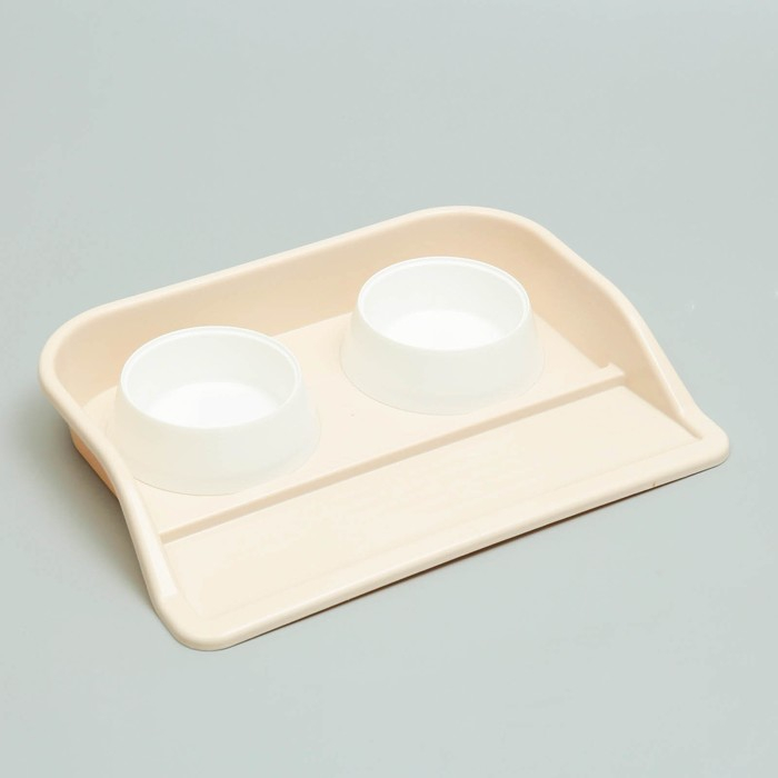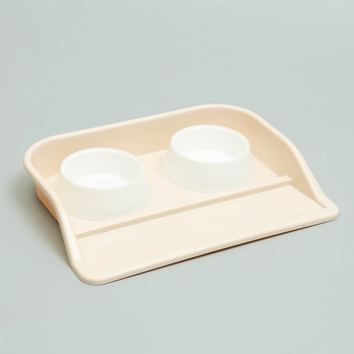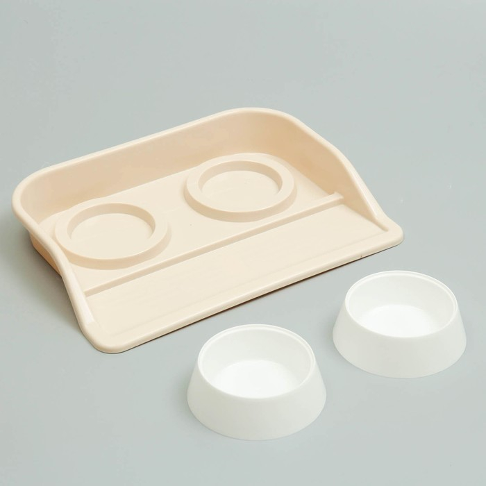 Миски с лотком "Феликс" 0,3 л, 41 x 30 x 6 см, бежевый лоток, белые миски
