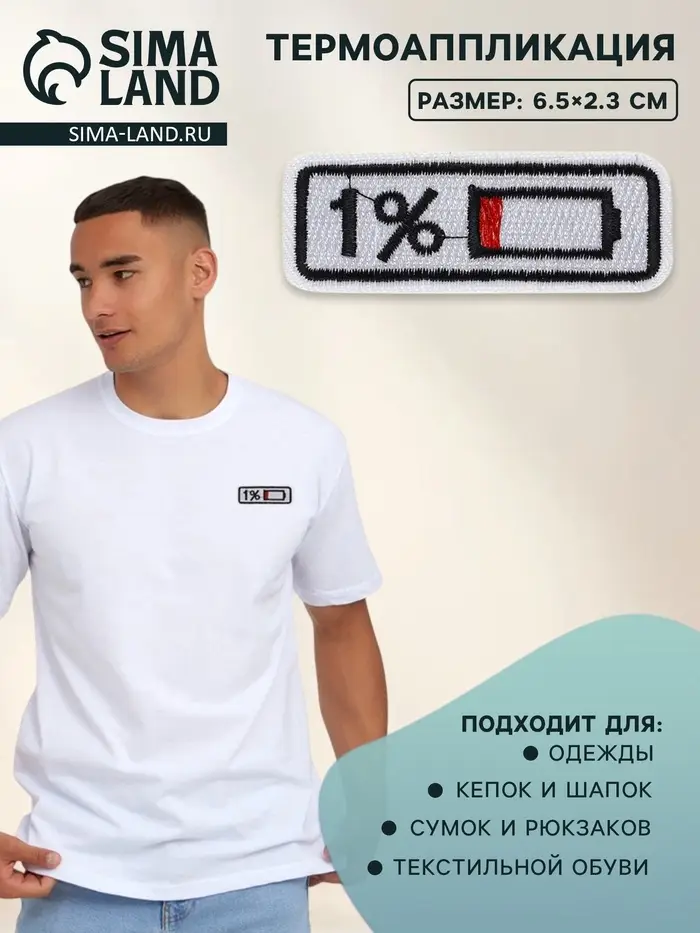 Термоаппликация «Зарядка», 6.5×2.3 см, белая