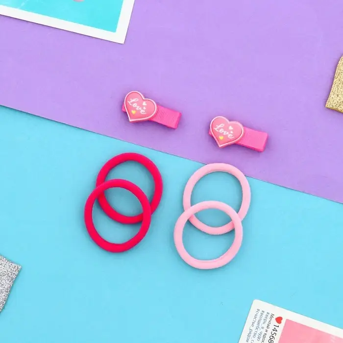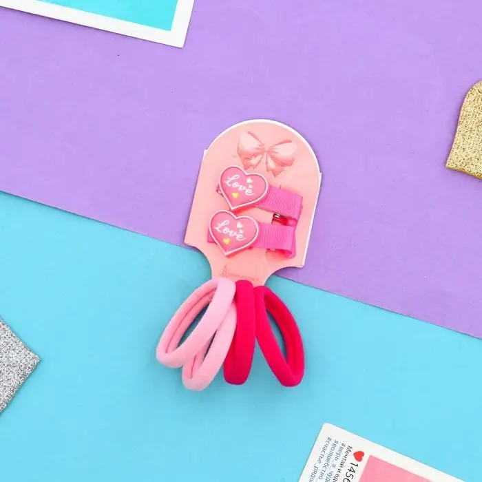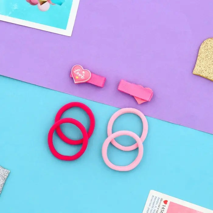 Набор для волос «Крохотуля», 4 резинки, 2 зажима 3.5 см, сердечко, розовый