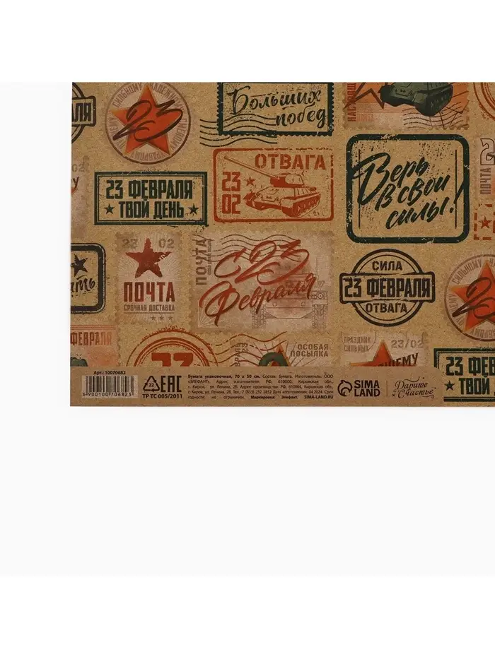 Бумага упаковочная крафтовая «Почта», 50 х 70 см