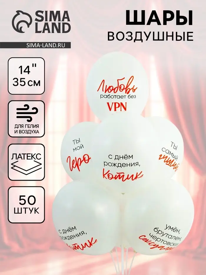 Воздушные шары латексные 14" "Ты мой герой" набор 50 шт.