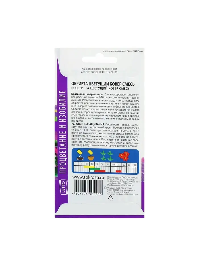 Семена цветов Обриета "Цветущий ковер", многолетник, 0,1 г