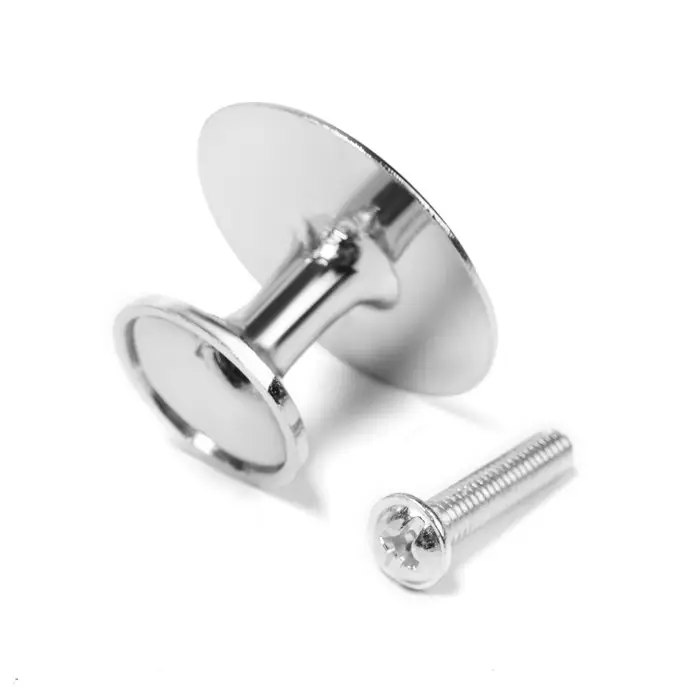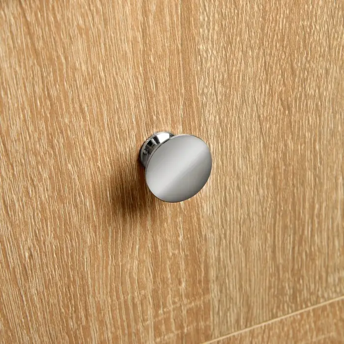 Металлическая круглая ручка-кнопка подойдёт для фасадов мебели кухни, гостиной или спальни.