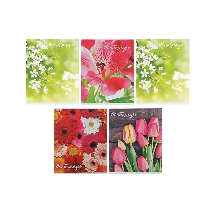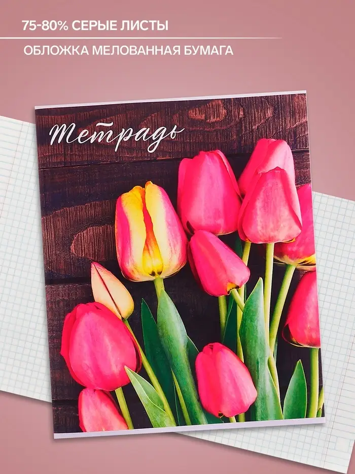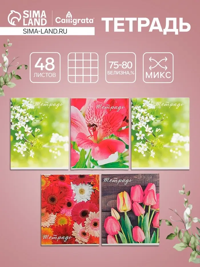 Тетрадь 48 листов в клетку Calligrata «Цветы», серые листы, МИКС