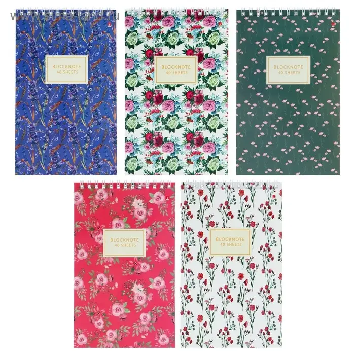 Блокнот А5, 40 листов на гребне "Цветы" Паттерн, обложка ламинированный картон, блок 55 г/м2, МИКС